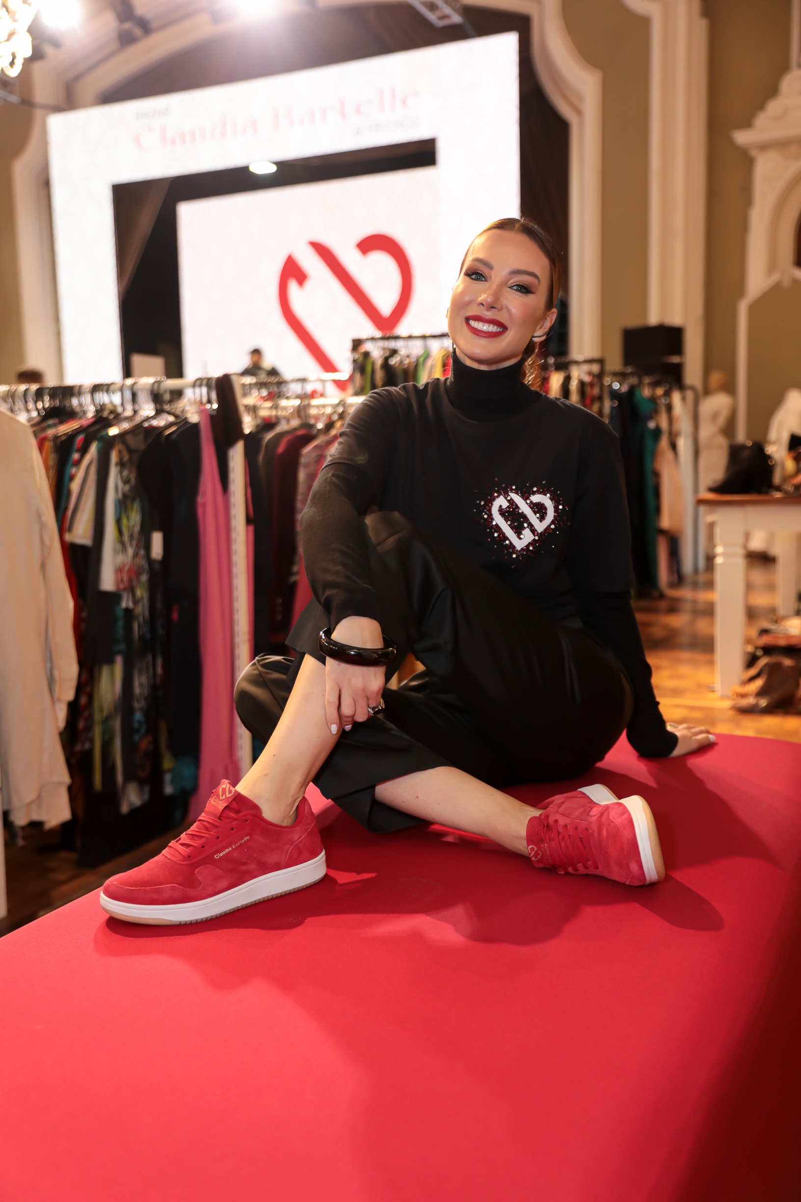 Claudia elaborou, ainda, um tênis exclusivo em parceria com a Olympikus. Foram vendidos todos os 300 exemplares da edição limitada. Trata-se de uma versão personalizada do modelo Olympikus Manobra. Com detalhes em couro camurça e cartela de cores em vermelho e cobre metalizado, o design do calçado simboliza amor e preciosidade, representando a causa defendida pelo Bazar.